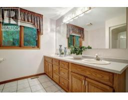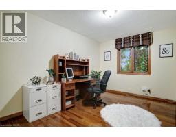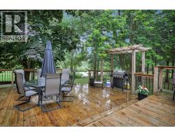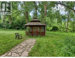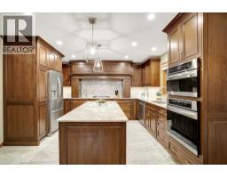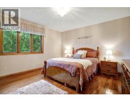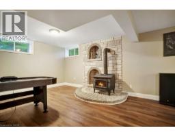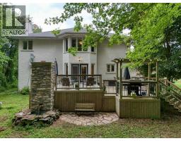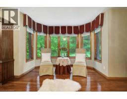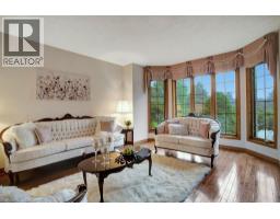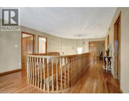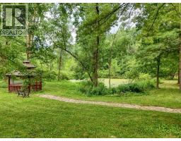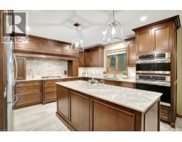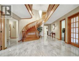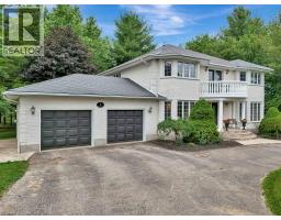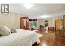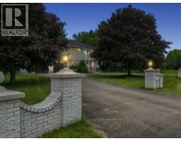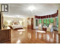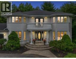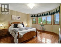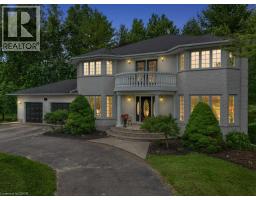 Impressive, custom built home with a total of 5771 sq ft of finished living space on 2.34 acres, located in an exclusive St George community. A stately front exterior adds immense curb appeal to this home. Quality finishes are evident as you are welcomed into the expansive foyer with glistening porcelain tiles and an open to above grand, oak staircase. Classic French doors lead to a formal livingroom, separate formal dining room and office, all with hardwood flooring. The timeless Chef's kitchen is highlighted by custom cabinetry, granite countertops, porcelain backsplash, built in appliances, a 7 ft island plus tasteful lighting adding to the elegance of the kitchen. A generous dinette with backyard access is partially open to the family room featuring a brick/marble wood burning fireplace. Completing the main level is a convenient 3pce bathroom and laundry room. The 2nd level layout offers a wraparound corridor with access to a charming exterior Juliette balcony, 3 spacious bedrooms, 6pce main bathroom, a sizeable primary bedroom with sitting area, 6pce ensuite and a 8' x 13' walk-in closet. The ultimate games room can be found in the finished lower level, along with a corner beverage bar, wood stove, ample storage space and a cold room. Experience the sounds and serenity of nature from the 2 tiered deck overlooking the lush grounds with a view of the pond and it's captivating wildlife. This home offers an abundance of interior space on a prime, private lot in one of the most tranquil areas. An ideal home for a growing family or multi-generational living. (id:50886)
