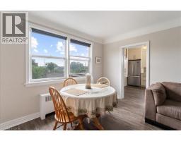 $568 MonthlyCharming, turn-key 1 bed, 1 bath unit in desired, well maintained and affordable East Brow Co-operative. This unit has undergone extensive updates including a lovely kitchen featuring white cabinetry w/ crown moulding, corian counters, built-in pantry/display cabinet, included stainless steel whirlpool fridge and stove. Updated toilet and vanity in bathroom. Durable and attractive vinyl plank flooring throughout unit. Electrical updated to breakers. Charming archways and coved ceilings in open living room/dining room. Lots of closet space, and additional storage included with exclusive use locker(in basement). Enjoy the quiet rear of the building location of this unit with views of quaint and mature neighbourhood. Wander out front of the building to take in the east Hamilton escarpment views. Walk to great restaurants and shops on Concession. Easy access to trails, transit, airport and Juravinski Hospital. Co-op fees $568 monthly includes: property taxes, parking, heat, water and exterior maintenance. Hydro is owner’s responsibility. Pets are welcome with some restrictions. (id:50886)