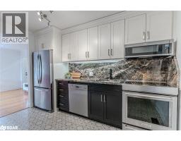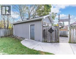 CHARACTER-FILLED EAST END BUNGALOW WITH MODERN UPDATES, A DETACHED GARAGE & BACKING ONTO A SCHOOL! This charming East End bungalow is perfectly situated less than five minutes from downtown shops, dining, Johnson's Beach, the MacLaren Art Centre, and the Barrie Public Library, with parks and recreation close by. Families will love being able to walk to both Oakley Park Public School and Barrie North Collegiate, creating an easy daily routine. The exterior offers curb appeal with vinyl siding in a board and batten style, a welcoming porch, and a tidy lawn, while the fully fenced backyard extends your living space with a large deck, soffit lighting, gas BBQ hookup, and peaceful views backing onto Oakley Park P.S. Natural light fills the living room, complemented by pot lights, crown moulding, and a bay window that adds warmth and charm. The updated kitchen features two-tone cabinetry with plenty of storage, granite counters that carry through to the backsplash, stainless steel appliances, undermount lighting, and patterned flooring. Two comfortable bedrooms are located on the main level, served by an updated bathroom with a modern tile surround, a built-in shower niche, and heated floors. The rear door provides easy access to the basement area, which offers future potential for an in-law suite and currently hosts a third bedroom, a spacious rec room, a full bathroom, and generous storage. A detached 24' x 12' garage is ideal for parking, hobbies, or extra storage, and the driveway fits four vehicles with ease. Move-in ready and full of character, this East End gem is a wonderful place to call home! (id:50886)