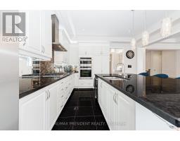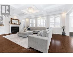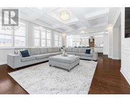 Honeysuckle model, boasting over 5500 sq. ft. of luxury living. Step into elegance with 10 ft. smooth ceilings on the main floor, adorned with granite kitchen countertops and built-in appliances. The upgraded pantry & servery provide convenience, 2 double door walkouts to the covered patio from Kitchen & Den invites outdoor enjoyment. Combined dining & living, family room offers a cozy ambiance with a waffle ceiling & gas fireplace. A full in-law suite on the main floor adds versatility. Hardwood graces the main floor and upper hallway, while ceramic tiles adorn high-traffic areas. Upstairs, 9 ft. ceilings and 8 ft. doors enhance the grandeur. The master bedroom boasts spacious his/her walk-in closets and a spa ensuite, complete with a walkout to covered balcony. Two bedrooms feature his/her closets and full ensuites, while two additional bedrooms share a combined ensuite. This home is meticulously updated with modern lighting and pot lights. Over $250,000 in upgrades. (id:50886)