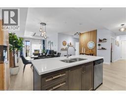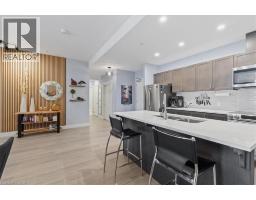 Modern Comfort Meets Urban Convenience at 5 Wake Robin Drive, Kitchener! Welcome to over 1,200 sq ft of sleek, contemporary living in this 2-bedroom, 2-bath condo ideally located just steps from Sunrise Plaza and minutes to Hwy 7/8. Designed with both style and function in mind, this home boasts soaring 9+ foot ceilings, wide-plank hardwood flooring, designer light fixtures, bold modern accent walls, and oversized windows that flood the space with natural light. The chef-inspired kitchen features granite countertops, a massive island with bar seating, ample cabinetry, and stainless steel appliances — perfect for entertaining or everyday living. The spacious primary bedroom includes a full ensuite bath, while a second full bathroom ensures comfort for guests or roommates. You’ll love the bonus in-suite laundry room with extra storage, plus the added value of 2 parking spots and a locker. Step outside to your ultra-modern oversized balcony, ideal for morning coffee or evening wine. Perfect for young professionals or empty nesters seeking low-maintenance living in a walkable, well-connected urban hub. Experience luxury Kitchener real estate at its finest — this is the one you’ve been waiting for! (id:50886)