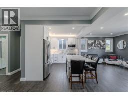 WOW! Stunning, new home in highly sought-after Port Dover, just steps from Black Creek! This home offers versatility for today’s lifestyle. Appreciate the private double-wide driveway, accommodating up to 6 vehicles, & the stamped concrete front porch. A spacious foyer features double mirrored closets, 9-foot ceilings, & oak hardwood flooring that flows throughout the home. Located off the foyer is a laundry room with quartz countertops. On the opposite side, is a beautifully finished 4-piece bath with textured tile floors, quartz vanity & tile shower surround. The open-concept main floor is filled with natural light & offers beautiful canal views. The custom kitchen is a showstopper, boasting a 5-seat island, quartz counters & backsplash, under-mount lighting, dovetail soft-close cabinetry, stainless steel appliances & pantry. Additional features include pot lights & crown molding that continue into the living area, creating a seamless flow. Upstairs, enjoy a versatile space with 12-foot vaulted ceilings, recessed lighting, wet bar with quartz counters & bar fridge—perfect for entertaining, working from home, or relaxing. 7-foot sliding doors lead to a covered Dura-deck with glass railings, offering breathtaking views of the canal. There are 3 spacious bedrooms, including a primary suite, & a luxurious 5-piece bathroom with double quartz vanity & textured tile flooring. On the lower level, a landing leads to the back of the home & a flexible storage/utility room with a 3-piece bath rough-in, secondary laundry option & mechanical systems. This space offers great potential for a variety of future uses. A 1.5 car garage is just off this space featuring drain and water supply line rough-ins. Located just minutes from the heart of Port Dover, this home offers a peaceful retreat with easy access to local amenities. The owner may consider selling the land behind the home on the canal providing the possibility to add some green-space, a docking spot & access to Lake Erie!! (id:50886)