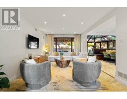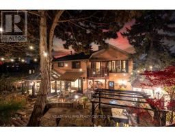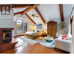 Step into your private urban oasis with this exceptional home, featuring 3 spacious bedrooms and a versatile 4th den on the 2nd floor, perfect as a nursery, or cozy retreat. The primary suite impresses with vaulted ceilings, a custom wood-burning fireplace, a private balcony, and a spa-inspired ensuite complete with a built-in sauna and glass-enclosed oversized shower. Natural light floods the upper hallway through a skylight, creating a warm and inviting atmosphere.At the heart of the home, the chef's kitchen is designed for both family living and entertaining, with built-in appliances, generous stone surfaces, a prep sink, and a built-in breakfast nook. Sunlight fills the adjacent dining room and sunroom, offering year-round views of the lush, meticulously curated gardens. Additional highlights include a private main floor office with its own wood-burning fireplace, a functional mudroom with bench, a walk-in closet, abundant storage throughout, and a fully equipped lower-level in-law or nanny suite with its own kitchen, fireplace, living space and 5th bedroom. Three wood-burning fireplaces throughout the home add warmth and charm to every room.The resort-style backyard is a true entertainer's dream, featuring a heated pool, cabana, two fire pits, integrated speakers system, multiple seating and dining areas, and beautifully landscaped gardens that ensure privacy and serenity.Set on a rare pie-shaped lot spanning almost 1/3 acre, over 200 feet deep, and opening to a 121-foot rear lot line, this property perfectly balances the tranquility of a private retreat with the convenience of city living, just moments from highways, Fairview Mall, the subway, parks, and top-rated schools. An extraordinary offering not to be missed, schedule your private tour today. (id:50886)