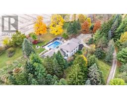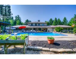 This circa 1875 fieldstone farmhouse has been thoughtfully redesigned by architect Grant A. Whatmough and is set on approximately 99 acres behind a gated entry. Maintaining classic charm and modern convenience, this property is ready for a new family to carry on the tradition. The main floor welcomes you with a double door entry leading into a spacious open concept kitchen and large living area highlighted by a stone fireplace and deep windowsills. The kitchen features Corian counters, stainless steel appliances, a center island, and walkout access to a covered stone patio and in ground pool. Enjoy cozy breakfasts by the wood burning fireplace or host larger gatherings in the formal dining room. A rare main floor primary suite offers hardwood floors and a walkout through double French doors to a sunroom with heated floors overlooking the perennial filled backyard and pool. The spa style ensuite includes heated tile floors, a double glass shower, and a soaker tub. Upstairs, you will find four bright and spacious bedrooms, each with closets and windows overlooking the private property. Along with the added ceiling height, this level features two updated baths, upper level laundry, and generous closet space. Outdoor living is highlighted by a 20 x 40 geothermal heated marbelite pool with diving board, a flagstone patio, and a covered entertainment area complete with a pizza oven and cooking space. A heritage post and beam barn with hayloft, a secondary garage or shed, and a silo enhance the property's charm. Mechanically, the home offers dual geothermal systems for the house and pool, radiant in floor heating, two drilled wells, and an active lease on approximately 52 workable acres. Trails and a 21 acre woodlot provide endless opportunities for exploration. This one of a kind rural retreat is just minutes from town amenities and ready for its next family to enjoy. (id:50886)