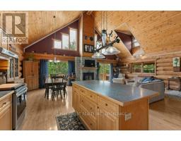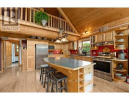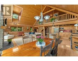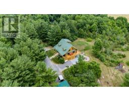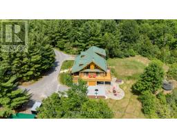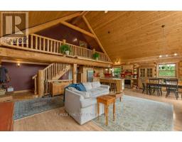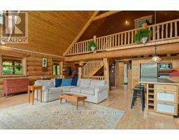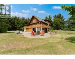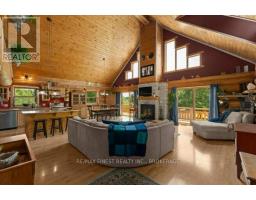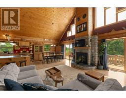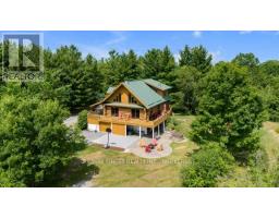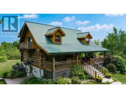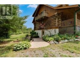 Nestled amongst mature trees on a quiet country road just 20 minutes to town, this stunning BC Fir Log home situated on a tranquil and private 4 acres is sure to impress. The home cannot bee seen from the road and features a turn around driveway lined by lilacs ideal for a trailer, boat, etc. with access to drive shed ideal for storing your toys. As you pull up to the front entrance you are immediately greeted by a large welcoming front porch spanning the entire front of the home ideal for morning coffees or unwinding after a long day at work. Once done enjoying the beautiful setting, as you head into the home you will appreciate the amazing wood work and log details spanning two storeys providing a warm open feeling easily integrating your Kitchen, dining, and living areas punctuated by a centrally located fireplace. Natural light floods the home in abundance, gracing the living area, country kitchen with island and spacious dining ideal for entertaining and family gatherings. The main floor also features two good sized bedrooms as well as a lovely 4 piece bathroom. As you ascend the skillfully crafted wood stairs, you arrive at the landing overlooking the main floor and enter into the large primary bedroom with balcony and 4 piece ensuite. The functionality and appeal of this already impressive home is further compounded by a bright walkout basement withnew carpet and easy access both from the side of the home through your attractive mudroom as well as the backyard leading out to the stamped concrete patio and hot tub overlooking the peaceful grounds . The basement features plenty of storage, a home office, a rec room as well as a family room with the possibility of creating another bedroom or in-law set up. While already impressed, let me leave you with a few additional conveniences; there is a poured pad ready for a garage if desired, the new front entry steps are sure to impress, many windows are newer, chicken ready set-up, and the fireplace is WETT cert! (id:50886)