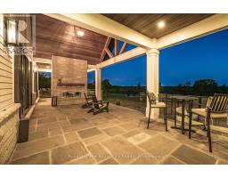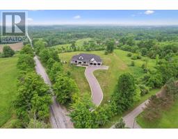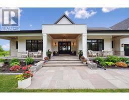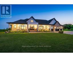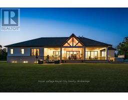 Custom-Built Luxury Bungalow on 2.4 Private Acres with Escarpment Views. Welcome to this one-of-a-kind custom-built bungalow offering 3,400 sq. ft. of refined main floor living space, perfectly nestled on 2.4 acres of serene countryside. With panoramic views of the escarpment and set well back from the road, this residence offers exceptional privacy while being just 20 minutes from the 401. Designed with luxury and functionality in mind, the home boasts soaring ceilings and oversized windows, creating an expansive, airy ambiance throughout allowing the natural landscape in and flooding the home with light. The main level features a seamless open-concept layout anchored by a great room and primary bedroom with oversized sliding doors opening to an extended outdoor living space with a two sided fire place, hot tub, and an abundance of entertaining space. The heart of the home is a chefs dream kitchen outfitted with top-tier Wolf, SubZero, and Cove appliances, complemented by a stylish servery just off the formal dining room. Retreat to the spacious primary suite, a true sanctuary offering an oversized spa-inspired ensuite complete with heated floors, a large walk-in shower, water closet, luxurious soaker tub, dual sinks with an extended vanity, and a generously sized walk-in closet. Two additional bedrooms on the main floor each enjoy their own private ensuites. Downstairs, the wow factor continues. The 10-foot ceilings and expansive windows make the finished basement feel anything but below grade. Designed for versatility, the lower level includes a full gym, sauna, and a private entry from the oversized 3-car garage making it perfect for an in-law suite. This separate living space features a bedroom, full bath, and kitchenette with a fridge, sink, and microwave. Every detail has been thoughtfully considered. Truly, this is a rare opportunity to own a stunning estate home where luxury, privacy, and convenience converge. (id:50886)
