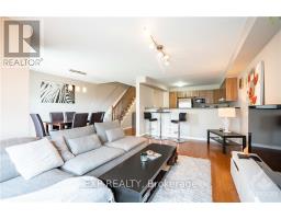 Welcome to this charming Eastboro Village home featuring 2 bedrooms plus a den and 1.5 baths! Step into a spacious foyer with direct garage access, ceramic tile flooring, a convenient powder room, a double closet, and a versatile den - perfect for a home office or reading nook. The second level offers an inviting open-concept layout with hardwood floors, a modern kitchen boasting ample cabinetry, and a bright living/dining area with walk-out access to a private balcony. Upstairs, you'll find a spacious primary suite with a walk-in closet and access to a second balcony, a luxurious main bath with a soaker tub and separate shower, and a generously sized second bedroom. Enjoy comfort, style, and functionality in a desirable community close to parks and schools. (id:50886)
