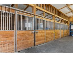 Hobby Farm for Sale – Welcome to 5041 Notre Dame ave. featuring a charming Cape Cod–style home nestled on 13 acres of picturesque land. This lovingly cared-for property is ready for its next owner to carry on the pride, hard work, and attention that has gone into it over the years. Inside, the home offers 4 spacious bedrooms including a spacious loft above the garage. The main floor features a large foyer with convenient laundry, leading into a bright kitchen with an island and ample cabinetry with built in appliances and 2 pantries. A warm and inviting living room and dining area flow seamlessly to the outdoors, where you’ll find tiered composite decking, a gazebo, and an above-ground pool overlooking the property and front pond and your horses—a perfect setting for relaxation and entertaining. The lower level includes a large cozy family room with a gas fireplace, office/den, a Geo thermo forced air furnace in storage room, and a cold cellar. For horse lovers, the property includes a heated 34 x 42 barn with 6 stalls, water area and grain room, 24 x 26 tack room with plenty of lockers w separate blanket room and which this building also consists of a lean-to offering even more covered parking or storage plus a 36 x 70 hay barn and a chicken coop. All is ideal for keeping your own horses or even taking in boarders—the opportunities here are endless. The 30 x 40 quonset is perfect for farm equipment, business use, or personal toys. All is situated on well-maintained grounds with 4 pastures (with the potential for a 5th). Whether you’re looking for a peaceful retreat, a place to raise animals, or simply a beautiful country setting close to town, this move-in ready hobby farm has it all. Truly a must-see to appreciate! NEGOTIABLE: Hay feeders, water troughs for horses, Left over Hay, 77' Tractor and all implements (id:50886)