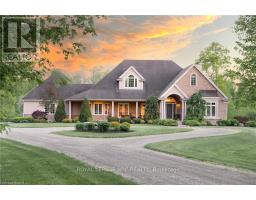 Welcome to 5045 Michener Road, a remarkable country estate that combines elegance and serenity on 11.9acres of lush forest. Built in 2006, this sprawling bungalow offers nearly 5,000 total square feet of living space, making it the perfect retreat from everyday life. A scenic 500-foot driveway lined with maple trees guides you to the grand entrance of this stunning home. Step inside to find gleaming hardwood floors and a spacious living room, featuring a soaring 20-foot vaulted ceiling, floor-to-ceiling stone fireplace, and an inviting gas hearth. The formal dining room and chef's kitchen provide ideal spaces for both entertaining and daily living. On the main floor, you'll find two bedrooms and two full baths, including the primary suite a private oasis with a luxurious 5-piece ensuite and walk-in closet. Convenient main-floor laundry offers direct access to the double car garage. Upstairs, a bonus loft provides the perfect spot for a home office or additional living space. The finished basement expands your options with a large recreation room, a roughed-in third bathroom, and a spacious bedroom with ample storage and workshop space. Double sliding doors open onto a covered back porch, where you can relax and take in the tranquility of your surroundings. Explore the private trails that wind through the property and lead to a fire pit, perfect forgathering with friends and family. Located in a quiet area, yet close to Sherkston Shores, Crystal Beach, and just a short drive to Niagara Falls or Buffalo, 5045 Michener Road offers the ideal blend of luxury, nature, and convenience. This estate isn't just a home it's a lifestyle. (id:50886)