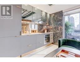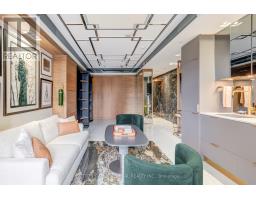 Experience boutique-style living in the heart of Yorkville with this fully furnished, one-of-a-kind suite at 88 Cumberland. Thoughtfully redesigned with striking porcelain tile floors, 9-ft feature wall slabs, and an illuminated star ceiling that sets the mood at every hour. A custom Italian wall bed blends seamlessly into sleek millwork, creating a flexible open-concept layout perfect for modern living. The kitchen features premium finishes including leather-wrapped appliances, porcelain and mirrored cabinetry, brushed gold accents, and smart hidden storage. The spa-inspired bath offers a marble vanity, tinted glass shower, and built-in medicine cabinet. Enjoy integrated Sonos speakers, remote blackout shades, digital climate control, and a same-floor locker for convenience. All within steps of Bloor's luxury shopping, fine dining, and cultural landmarks. (id:50886)