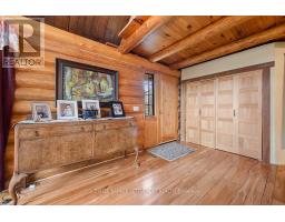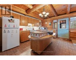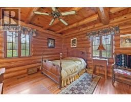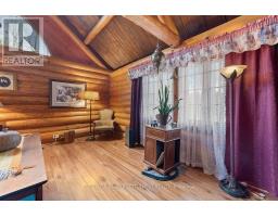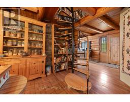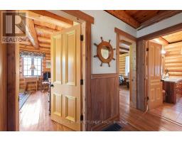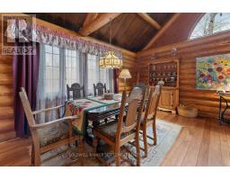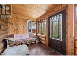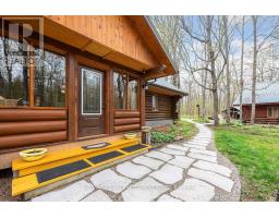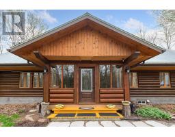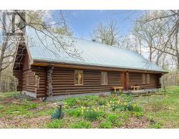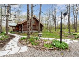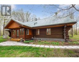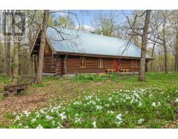 Welcome to 506 Holbrook road. This custom-built log home nestled in a well treed lot exudes rustic charm, tranquility and privacy. The extra large red pine logs have all been meticulously hand scribed, sanded and stained. Stepping inside you enter a sunroom from which you then enter the home and are met with a charming country kitchen separated from the living room by a massive stone wall where the Defiant wood stove is found. Hardwood flooring is seen throughout the main floor. Natural light from the windowed gabled end wall illuminates the living room, and dining room area. The vaulted ceiling in this space is a show piece of log truss design. From the Kitchen side a circular staircase takes you to an extra-large loft area overlooking the living room. Pinewood flooring covers this entire loft space which offers endless possibilities: home office, media room, guest sleeping area. Downstairs from the kitchen is a short hallway leading to the 3 ample bedrooms. Here at this end of the home the 3 piece bathroom is found. All interior log walls have been sanded smooth and finished to a pleasing golden hue. Leading up to the home is a stack log walled building which could be used as a workshop or garden shed. Don't miss out on seeing this unique log home just minutes from Smiths Falls yet offering the charm and tranquility of country living. (id:50886)