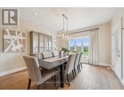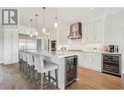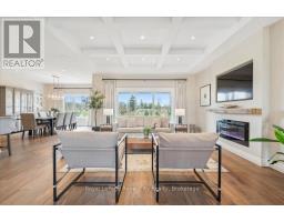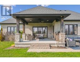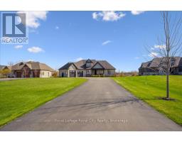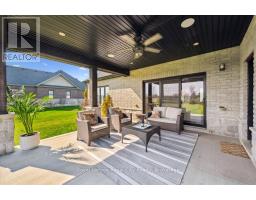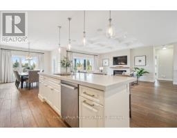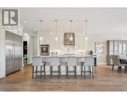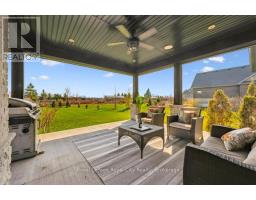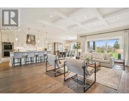 Tucked away on a prestigious cul-de-sac in Ariss, this extraordinary executive residence epitomizes refined luxury, privacy, and community. From the moment you arrive, the attention to detail and upgrades, both inside and out, set this home apart as a true showpiece. The open-concept main level is a masterpiece of design, showcasing hand-scraped engineered hardwood beneath soaring 9' ceilings. In the living room, a striking coffered ceiling elevates the space with architectural elegance, while oversized windows flood every corner with natural light. A massive quartz island anchors the gourmet kitchen/dining area, surrounded by floor-to-ceiling custom cabinetry, premium finishes, a generous pantry, and high-end appliances, including a gas countertop range, double built-in ovens, and a MARVEL wine fridge. Step outside to the covered rear porch and adjoining composite deck, where a built-in hot tub invites relaxation overlooking the expansive backyard and the scenic Kissing Bridge Trail beyond. The primary suite is designed to rival any five-star spa, boasting a luxurious ensuite with a frameless glass shower, dual vanities with custom cabinetry, a spacious walk-in closet, and direct access to the deck and hot tub. Two additional bedrooms, a stunning 5-piece bathroom, and an elegant powder room provide comfort and sophistication for family and guests alike. The main-level laundry and mudroom combination is both beautiful and practical, finished to the same high standard as the rest of the home. The lower level is equally impressive, with soaring ceilings, engineered hardwood, a striking stone-clad gas fireplace, a 4-piece bathroom, and two generously sized bedrooms- creating the perfect space for guests, teenagers, or extended family. Ideally located just minutes from Guelph, K/W, and Centre Wellington, and a short stroll to Ariss Valley Golf Course, this home delivers an unparalleled lifestyle of elegance and convenience in a highly desirable rural setting. (id:50886)