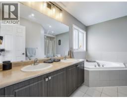 Stunning, Bright & spacious 4 beds, 4 baths, in the highly demanded family friendly West Brantford community. Highly upgraded house with many luxury features and updates that makes it a perfect family house: DD entry, with a lovely porch, 9'ceilings and carpet free all through the house, oak stairs open to above, spacious family room with a fancy stone wall and a fireplace, a chef's modern kitchen w SS high end appliances, granite countertops, center island/ breakfast bar. 4 spacious bedrooms each can take a king bed and more furniture, high end electric fixtures & spotlights all through. Bright and spacious master bedroom with a large walk-in closet and a 5 piece ensuite with a standing shower, soaker tub and his + hers sinks. Oak stairs with wood pickets open to above w a luxury chandelier. The basement is nicely finished as a large recreation room for extra family gathering space along with a full bathroom and a cold room for your storage. Fenced large backyard perfect for your family and friends gatherings over bbqs. The house is practically 2 mins from the best schools in the area, wonderful trails, parks, shopping plaza and has an easy access to the HWY. Perfect for a large family. Don't miss it. (id:50886)