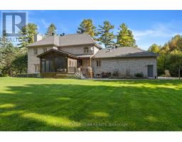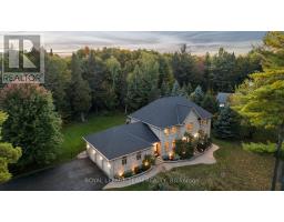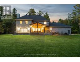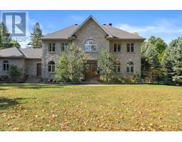 Set on a winding drive and surrounded by mature trees, this full-stone executive residence offers both presence and privacy in a truly natural setting. Built in 2000, the 2-storey design blends timeless elegance with thoughtful updates across approximately 4,100 sq ft above grade (MPAC), set on 2.47 acres. A grand double-door entry opens to a tiled foyer and freshly painted interiors, where 9 ceilings, refinished hardwood flooring, and California shutters create a warm welcome. Formal living and dining rooms provide ideal spaces for entertaining, while the sunken family room with pillars and wood-burning fireplace is perfect for everyday gatherings. The 2024 Deslaurier kitchen is a true highlight: Sub-Zero/Wolf appliances (fridge, induction stove, microwave, wine fridge), custom cabinetry, quartz counters, large island with seating for 6, prep sink, pot lights, and undercabinet lighting. French doors lead to a screened porch with vaulted ceiling - a year-round favourite. Upstairs, hardwood flooring continues, with a spacious primary retreat offering a gas fireplace, custom walk-in cabinetry (2023), and a spa ensuite with soaker tub, dual vanities, heated floors & towel rack. The updated main bath (2018) also features custom finishes, heated floors & towel rack. A mudroom with new laundry (2025) connects to the oversized 3-car garage. Lower level unfinished with painted floors (2025). Systems: Generac 20kW generator (2021), tankless HWT owned (2023), AC (2022), 200 amp, Starlink internet, security cameras. Roof (2018), garage roof (2016), 12 windows replaced (2019-2020), driveway (2021, resealed 2025). Landscaped lot includes fenced yard with natural backdrop beyond. All this just 10 min to Tanger Outlets & 9 min to Kanatas High Tech hub -convenience meets country charm. 24 Hours Irrevocable preferred on all offers. Some images are virtually staged. (id:50886)