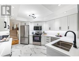 On a quiet, child-friendly & highly sought-after cul-de-sac, this beautifully upgraded 2-storey detached link home (2,076 sq ft + finished lower level) is nestled on a rare pie-shaped lot with a breathtaking 93-ft wide rear yard-an oasis of lush gardens, stone patios (2023), a tranquil koi pond, gas BBQ hookup, and soft landscape lighting that transforms evenings into enchantment. A life-renewing retreat! Gleaming 3/4" solid oak floors in the liv, din, fam rm, hall & all bedrms; porcelain tiles flow thru the foyer & kitchen; luxury vinyl plank enriches the finished basement - no carpeting anywhere. The 2025 designer kitchen captivates with white shaker cabinetry, quartz counters, under-cabinet lighting, pot drawers, soft-closers, & new appliances, opening to a bright breakfast area & garden views. Entertain in the elegant liv and din rms or unwind in the expansive fam rm with its soaring 9'8" ceiling & classic wood-burning fireplace. Upstairs, the serene primary suite offers a walk-in closet & updated 4-pc ensuite; 2 additional bedrooms share a renewed 4-pc main bath with double-sink vanity. The finished basement adds a cozy gas fireplace and versatile recreation space. Quality upgrades include Lennox furnace, humidifier, A/C, and iComfort Wi-Fi thermostat (2016), owned hot-water tank (2016), architectural shingles (2010) with a 40-year warranty, 6" eaves & 4" downspouts (2024), upgraded white vinyl thermal windows; aluminum patio door (2020), three new entry doors, & spray-foam insulated garage with new metal doors. Elegant millwork includes stylish wainscotting, high baseboards, & crown molding; amazing new lighting thruout, & black door-hardware accent the freshly painted interior. Walk to Main Street Unionville, Toogood Pond, & Monarch Park; top Fraser-ranked schools; shops, & quick 404/407 access complete the picture. With its refined style, modern comfort, and storybook setting, 51 Redwood Ln is more than a home, it's a lifestyle you'll fall in love with! ** This is a linked property.** (id:50886)
