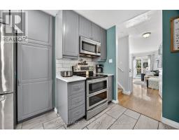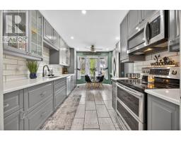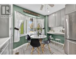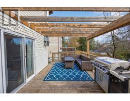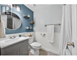 Welcome to this charming 3-bedroom, 2-bathroom two-storey home, ideally located within walking distance of shops, restaurants, and other local amenities. Step into the inviting front foyer, complete with a built-in cubby for shoes and coats - a practical and welcoming touch. The main floor features a bright living room with laminate flooring and a walkout to the back deck, which includes a wooden trellis - perfect for relaxing or entertaining outdoors. The kitchen showcases modern cabinetry, quartz countertops, a stylish subway tile backsplash, and a large bow window that fills the space with natural light. A 4-piece bathroom completes the main level. Upstairs, the primary bedroom impresses with a striking feature wall behind the bed and a large wall-to-wall closet. Two additional bedrooms, each with laminate flooring and plenty of natural light, offer flexible space for family, guests, or a home office. A convenient 2-piece bathroom serves the upper level. The finished lower level provides a spacious recreation room with laminate flooring and a laundry area - ideal for today's modern lifestyle. Kitchen updated '18, new deck '19, main floor windows '18 +/-. ** This is a linked property.** (id:50886)