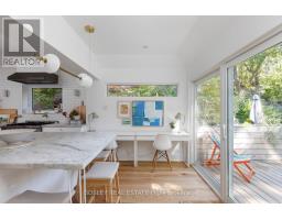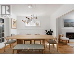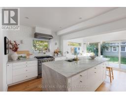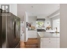Designed with families in mind, this elegant residence blends period charm with modern design. Generous room sizes, thoughtful flow, and beautiful finishes make it as stylish as it is practical for busy family life. At the heart of the home, the chefs kitchen is anchored by a massive marble island (perfect for cooking, homework, or family gatherings), complete with heated wide-plank white oak floors, a 6-burner AGA stove, dual KitchenAid dishwashers, sleek cabinetry, and brass accents. Sliding doors open seamlessly to a cedar deck and private backyard, while the screened Muskoka room extends the seasons for outdoor living. The formal living room, with leaded-glass windows and an oversized Valor gas fireplace, offers a warm space for family downtime or entertaining. Upstairs, three generous bedrooms and a charming family bath with clawfoot tub provide plenty of room for children. The third-floor primary retreat is a serene escape, featuring cathedral ceilings, a cozy lounge area, walk-in closet, and a 5 piece ensuite with custom double vanity, quartz counters, and champagne-brass fixtures, all framed by tranquil treetop views.The bright, professionally waterproofed lower level functions beautifully as an in-law or nanny suite with private side entrance, kitchenette/laundry, a large bedroom, and a spacious rec room, ideal for kids' play or teen hangouts. Outdoors, enjoy landscaped front gardens with hydrangea and a maple tree, a lush fenced backyard with privacy hedging, and parking for three on the private drive.A rare opportunity to own a home that radiates warmth, character, and style- plus all the practicalities of family living- in a coveted neighbourhood setting, just steps from top schools, the Baby point club, Bloor's shops and restaurants, the Humber River parks and bike path, and the TTC. (id:50886)