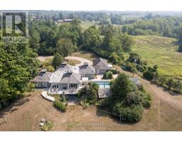 Your wait for paradise is over! This 17-acre property features two paved driveway entrances, a beautiful spring fed pond, complete privacy and an exquisite 4-bedroom, 3-bathroom home. Drive up the tree lined driveway as the stress of your day escapes you and is replaced by peaceful easy feelings. This custom build has a smart layout with stunning views from every window, and the primary suite will make you never want to leave it! The lovely kitchen is this centre of the design opening to a breakfast nook, library, and dining room, plus the bedroom wing of the home. The great room is bright and airy walking out to the inground saltwater pool and sun filled patio. The walk out lower level is home to a huge rec room, a full bathroom with a sauna, laundry and so much storage. Efficient Geothermal heating, five fireplaces, seven walkouts, chicken coop, veggie gardens, a sugar shack plus a small barn and acres to wander and relax. Only 35 minutes to the GTA, 8 minutes to the village of Erin and 20 minutes to Guelph. Your rural oasis is waiting for you, do not miss it! (id:50886)