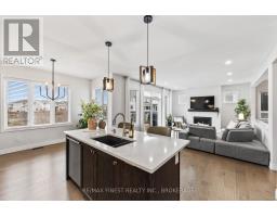 This stunningly upgraded two-storey home offers a thoughtfully designed floor plan and beautiful, high-end finishes that are sure to impress! Step through the front door into a bright, spacious foyer featuring a neutral and elegant palette. The open-concept main level includes a welcoming family room with a cozy gas fireplace, a stylish dining area with a custom servery bar, and a functional kitchen that overlooks tranquil pond views. Upstairs, the spectacular primary suite boasts two walk-in closets and a spa-like ensuite with a soaker tub, glass shower, and large windows that fill the space with natural light. Three additional bedrooms and a full bath complete this level-ideal for family living. The finished lower level adds even more versatility with a large rec room, a fifth bedroom, an office or gym area, a third full bath, and a full kitchen-perfect for guests or in-law potential. Walk out to the fully fenced yard featuring a concrete patio and a concrete walkway wrapping around the home for easy access and a clean, polished look. With over 3,800 sq. ft. of finished living space, a composite deck, pot lights, a gas stove, interlock walkways, and a covered front porch, this home combines comfort, luxury, and functionality. Truly a property you'll be proud to call your own! (id:50886)