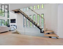 ARCHITECTURAL EXCELLENCE! CUSTOM MODERN MASTERPIECE! Designed by acclaimed architect Jeff Cogliati of Bloom Architects, this newly built showpiece blends contemporary elegance with timeless design. Set on a sprawling 0.22-acre lot, the home commands attention with its sculptural stone façade, dramatic sloping roofline, and cedar-clad insulated garage doors. Inside, natural light pours through expansive double-height slot windows, framing a serene Zen Garden courtyard - the centrepiece of the main level. A floating architectural mono-beam staircase with solid white oak treads anchors the space, leading to a breathtaking two-storey living room, dining area, and chef's dream kitchen built for entertaining. Enjoy a large central island, Sub-Zero refrigerator, Wolf six-burner gas cooktop, double wall ovens, and prep kitchen with second dishwasher. The kitchen and all bathroom vanities feature custom millwork, showcasing exceptional craftsmanship and design continuity. Accordion glass doors open to a covered terrace with built-in speakers and pot lights, perfect for effortless indoor-outdoor living. Upstairs, discover the luxurious primary retreat with dual walk-in closets and spa-inspired 5-piece ensuite featuring heated flooring. The junior primary suite also boasts heated flooring throughout, including the ensuite and dressing room with vanity. Two additional bedrooms share a well-appointed 5-piece main bath. Additional highlights include engineered 7.5" white oak hardwood floors throughout, private two-storey office with Zen Garden views, oversized mudroom with second powder room and direct backyard access, integrated in-ceiling speakers, and two high-efficiency HVAC systems dedicated to each floor for optimal comfort and climate control. Ideally located near top-rated schools, shopping, dining, highways, and the GO Train, this rare offering delivers unmatched craftsmanship, thoughtful design, and modern luxury for both relaxed family living and inspired entertaining (id:50886)
