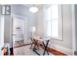Discover a masterpiece in the heart of the prestigious Woodfield district. This magnificent home offers an unparalleled fusion of historic elegance and sophisticated modern living. With over 2,700 sq. ft. of exquisitely finished space AG, this 4-bedroom residence is a testament to timeless character and thoughtful renovation. Step through the grand double doors into a breathtaking foyer where a majestic staircase and soaring ceilings set a tone of classic grandeur. The main floor is an entertainer's dream, featuring a formal living room with a decorative fireplace and a spacious dining room, both adorned with intricate crown moulding and rich hardwood floors. The heart of the home is the stunning, fully renovated kitchen, which boasts leathered countertops, premium stainless-steel appliances, a large centre island, and seamless flow into the cozy family room. This level also provides exceptional flexibility with a dedicated home office and convenient main floor laundry. Upstairs, the private quarters include four generous bedrooms. The serene primary suite is a true retreat, featuring a spa-like ensuite bathroom with a glass-enclosed shower, and a modern double vanity. An open loft area on this level provides another versatile space for work or relaxation. The finished lower level adds a large recreation room. Outside, the property sits on a beautifully landscaped lot with a long, interlocking stone driveway providing ample parking. The private, fenced backyard offers a tranquil escape within the city. Situated on a mature, tree-lined street, this home is just steps from the vibrant culture of downtown London, Richmond Row's boutiques and restaurants, and beautiful Victoria Park. Its prime location also offers an effortless commute to Western University and London's major hospital campuses. Families who want to ensure a priority in academics can rest easy knowing they are situated within boundaries of top schools like Central SS, Banting FI & CCH & MTS FI. (id:50886)