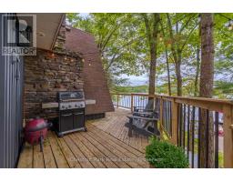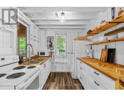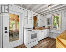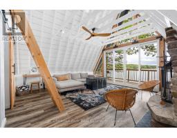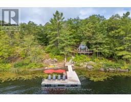 Once and while something very special comes along and you need to grab it - don't wait! "Cedar Point Aframe" on Gibson Lake is available for immediate closing and comes fully turnkey with all furniture, inside and out, along with the water toys. Move right in and enjoy Autumn at this 3 season, 760 sq ft, Aframe cabin perched right at the waters edge. Park at your brand new, private, cleared area, off the lane way and meander down to the cottage. Inside you are greeted by a screened in Muskoka room for dining off the kitchen. Into the living space, the stunning views of Gibson Lake are framed by the A and take your breath away. Both bedrooms are quietly tucked away, and a third queen bed is up the ladder to the loft. This sweet little place has been fully renovated with plenty of upgrades throughout which includes new paint, kitchen, flooring, and fixtures. This cottage is conveniently located right off HWY 400 and is 15 minutes to Port Severn, Mactier and Bala. (id:50886)
