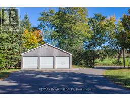 Within walking distance to Rice Lake, Gore's Landing Park & Marina, this beautiful brick 3+1 bedroom raised bungalow on a 1/2 + acre lot (.63) has exceptional curb appeal, offering a perfect blend of tranquility and convenience for outdoor enthusiasts and families alike. As you approach 5176 Kelly Rd, you will notice the extensive paved driveway (4 yrs) with parking for lots of vehicles and toys. Attached to the home is an over-sized double garage with direct access to the lower level offering potential for an in-law suite, a convenient ramp for easy accessibility (removable) and wired for portable generator hookup. In addition, there is a detached vinyl sided 3-car garage (24'7 x 30') built in 2016 that is heated, insulated, 100 amp service and has a concrete floor, making this an ideal space for hobbyists, car enthusiasts and/or additional storage. Step inside the home to discover a bright main level featuring interior renovations in 2017/18 with maintenance-free Andersen windows, hardwood flooring, crown mouldings, white colonial doors and baseboards. The heart of the home is the family-sized kitchen, complete with white cabinetry, stainless steel appliances, and a spacious eating area with extra matching cabinet, in addition to a garden door walkout to yard. Entertain in the front living and dining area with 3 large windows overlooking the front garden and yard. The primary suite offers a modern 4-piece ensuite and walk-in closet, plus there are 2 additional main floor secondary bedrooms with a 3-piece washroom incorporating a stackable washer and dryer, large shower with sliding glass doors plus vanity area. The lower level presents more bright living space with a 4th bedroom, huge L-shaped recreation room warmed by a cozy propane fireplace, 3 front elevation above-grade windows, rich coloured laminate flooring, and a suspended ceiling with pot lights, plus multiple unfinished utility rooms. (id:50886)