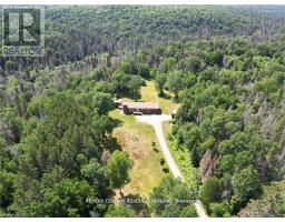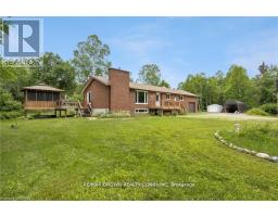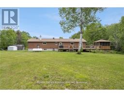 Welcome to your private country retreat on nearly 43 acres in the Unorganized Township of Redbridge. This expansive and serene property is defined by a picturesque river that runs directly through it, complete with a cantilevered footbridge offering scenic views and year-round enjoyment. The all-brick raised bungalow has been thoughtfully updated over the years to provide comfort, functionality, and charm. Notable improvements include a Vermont Castings wood-burning fireplace insert (2014), new shingles (2017), upper windows and sliding patio door (2018), furnace replacement (2018), lower-level windows and back door (2019), and a spacious back deck that wraps around the side of the home (2020). A screened-in gazebo was added in 2021 to enhance outdoor living, followed by updates to the front deck and steps, new kitchen countertop and backsplash, and a full renovation of the main 4-piece bathroom in 2023. In 2024, the lower-level 3-piece bathroom was fully renovated, along with the installation of a new front door. Inside, the main floor features three bedrooms and a full bathroom, while the lower level includes a fourth bedroom, a 3-piece bath, and a large office space with potential to serve as a fifth bedroom. The sunken living room provides a cozy atmosphere with a wood-burning fireplace, and the lower level also offers generous storage space and a utility/laundry area equipped with a convenient wood chute from the attached garage. Ideal for outdoor enthusiasts, the property includes a network of private trails perfect for hiking, ATVing, snowmobiling, and exploring nature. Spend your days fishing for Speckled Trout in your own river, relaxing in the gazebo, or enjoying the peaceful privacy this rare North River property offers. (id:50886)