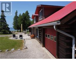 This Nature Lover’s Paradise is ready for year-round use and it is in an extremely quiet, private setting, with minimal boat traffic. It is a turnkey offering. This off-grid retreat is on 39 acres that offers spectacular sunsets and so much more! In addition to the nicely designed log home with attached garage, there is also a very large detached garage, and other useful buildings. There are multiple trails with room to develop much more. One trail heads to the east near the mouth of the bay that is basically through a bird paradise. There is also a network of trails to the north through the cedar bush. It offers 3 beaches, one being on a protected cove ideal for mooring watercraft, another has a great swimming location, and yet another that provides even more beautiful westerly vistas. The home has 3 heating sources including in-floor radiant heat and a masonry stove. There are 2 bedrooms & 1 bathroom on the main level, with 1 possibly 2 bedrooms on the second level with another bathroom. The garage has over 2500 sq.ft. on the main level. It is not only perfect for the storage of your recreational and working toys, but it includes a bathroom and finished rooms that can be used for additional accommodation, office, or games room. This property has lots of room for friends and family to enjoy with you! Contact the listing agent today for more details, or better yet, a private showing. (id:50886)
