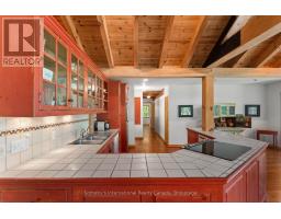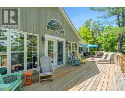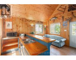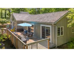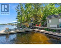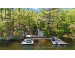 Welcome to your private waterfront escape on stunning Go Home Lake. With 160 feet of shoreline, two large docks, and incredible views over Paradise Bay, this beautifully renovated cottage offers the perfect blend of comfort, style, and adventure. Just a 10-minute boat ride from the marina, the property includes a spacious main cottage with a large addition, soaring vaulted ceilings, and high-end finishes throughout. The open-concept living room features a striking stone fireplace and walkout to a massive deck overlooking the water ideal for relaxing or entertaining. A custom gourmet kitchen with stainless steel appliances flows into the dining room, making hosting a breeze. The primary bedroom includes vaulted ceilings, water views, and direct deck access. Down by the water, there is a dock shed that sits right on the deck to store all of your lakeside lounging gear and water toys. An electric luggage carrier makes bringing supplies up the hill effortless. Out back, you'll find a shed and a separate art/craft studio for creative pursuits. A spacious bunkie provides extra room for family or guests with vaulted ceilings, two bedrooms, a living area, kitchenette, and its own deck. Whether you're soaking in the views, swimming off the dock, or enjoying cozy nights by the fire, this is lakeside living at its best. Accessed by boat only. (id:50886)