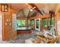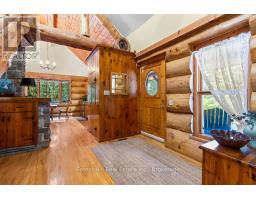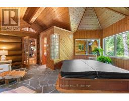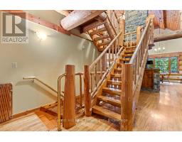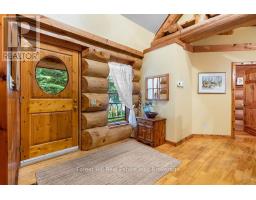 Tucked at the end of a winding lane, this exceptional 20 acre woodland retreat offers privacy, timeless craftsmanship, and an enchanting natural setting. At its heart lies a striking log home, built in Scandinavian Scribe style where hand-hewn logs, vaulted ceilings, and a central woodstove create a warm yet refined modern cabin ambiance. The Great Room sets the stage for both intimate evenings and entertaining, while a versatile Family Loft above adds charm and flexibility. Whether used for games, guests, or transformed into a spacious bunk room, its catwalk to a private balcony makes it a memorable retreat in itself. After days spent exploring the regions renowned trails, lakes, and outdoor pursuits, relaxation awaits in the Spa Room designed with in-floor heating, its own ventilation system, and a hot tub facing a cozy propane stove. A screened porch offers a serene setting for morning coffee, a glass of wine, or quiet reflection surrounded by nature. Every detail reflects thoughtful design, from the generous Boot Room with garage access perfect for managing outdoor gear to the impressive detached workshop with propane heat, a garage, storage area, bathroom & an upper studio apartment ideal for friends, extended family or income generation. A dedicated tractor shed ensures space for all outdoor equipment. The land itself is a masterpiece where open clearings meet mature woodland & winding trails invite you to begin your day by taking the dog for a peaceful walk. As evening falls, stargaze by the fire pit, tend to flourishing gardens, or simply wander and enjoy your very own park-like setting. Perfectly situated, this property balances seclusion with convenience: only minutes from amenities in Markdale, 15 mins from Beaver Valley Ski Club, and surrounded by the 4-season attractions that make Grey County a premier lifestyle destination. More than a home, 520251 Thistlewood Rd embodies a way of life one of country living in comfort with a connection to the outdoors. (id:50886)