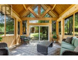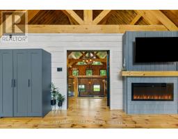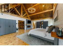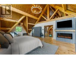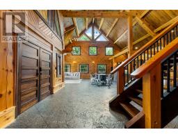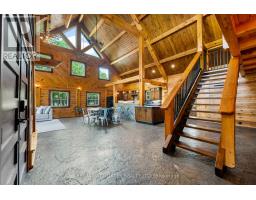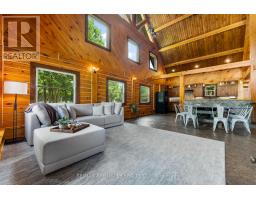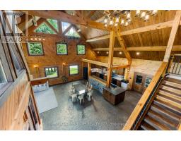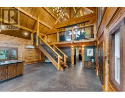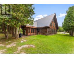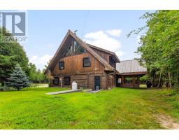 There's something about a log home that just feels right. Maybe it's the smell of the wood, the texture of the beams, or the way it reminds you of what is important. Whatever it is, you'll find it here. Tucked away on 2.4 serene, tree-lined acres, just a short drive to the Village of Lanark, this custom-built log home offers the kind of peace and privacy that is hard to find. Built in 2013, its more than a home- it's a lifestyle. One that blends timeless craftsmanship with modern comforts in the most grounding way. From the moment you arrive, the stunning timber-frame entrance welcomes you with soaring cathedral ceilings, and natural elements. The open-concept layout feels both airy and intimate, filled with natural light and rich textures. No basement here - just easy, efficient, slab-on-grade living, with stamped concrete a warmed by radiant in-floor heating. The elegant kitchen features tile countertops and lots of storage blending function and charm, while both bathrooms are finished with sleek quartz and quality fixtures. The second story dramatically overlooks the main level, and opens up to an incredible primary suite featuring an electric fireplace and stunning ensuite - right out of the style at home magazines. Every detail thoughtfully curated: whether its sipping your morning coffee on the covered porch or soaking in the stillness of a quiet afternoon under the trees, this land invites you to breathe deeper and slow down. The metal roof (2014) and low-maintenance exterior mean your time can be spent enjoying, not maintaining. If you've been looking for a place that reflects your love of nature, simplicity blended with luxury, this is it. (id:50886)