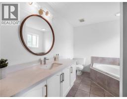 Welcome to this beautifully updated 2-storey home nestled on a quiet, tree-lined street in the highly sought-after Orchard neighborhood. Perfectly positioned for family living, this delightful residence is just a short walk to top-rated schools, parks, and only minutes from Bronte Creek Provincial Park, shopping, dining, and major highway access. Key Features & Highlights Freshly renovated kitchen in a modern crisp white design, featuring white solid wood cabinetry, 2025 updates include Quartz Carrera Marble style countertops, white backsplash, double sink, and new Smart LG stainless steel appliances, including a counter-depth family-sized refrigerator to maximize space. Open-concept main floor with newly refinished solid wood flooring in white oak, a spacious family room open to the kitchen, and a walkout to a fully fenced, private backyard—no direct rear neighbors! With stamped concrete patio and a natural gas BBQ hookup—perfect for entertaining with your family and friends! Upstairs boasts new 2025 white oak wood flooring and Berber carpeted stairs, refinished staircase with a generous landing ideal for a home office, and a large primary suite with an oversized walk-in closet and a 4-piece ensuite. Updated bathrooms (2025) with new Quartz Carera Marble style countertops, undermount sinks, and modern faucets and hardware. Near-new LG front-loading washer and dryer included. Stamped concrete double driveway, single-car garage Roof reshingled in 2022 for peace of mind. Fully freshly painted throughout. This home is Move-In Ready! And home offers the perfect blend of modern updates, thoughtful design, and a family-friendly location, Whether you're hosting in the backyard, cooking in the upgraded kitchen, or relaxing in the spacious primary suite, this home is ready to welcome its next chapter. (id:50886)