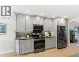 Welcome to this beautifully renovated home in prestigious southeast Burlington, ideally situated on Lakeshore Road across from the lake. Step inside to discover a light, bright and airy open-concept design with hardwood floors throughout the main level, skylights in the dining room and patio doors that lead to a relaxing deck setting. The spacious kitchen is a chef’s delight featuring beautiful quartz counters, abundant cupboard and counter space and a dedicated coffee centre. Elegant details like crown moulding and a cozy gas fireplace (2024) add warmth and sophistication. The main floor also features a convenient laundry room and inside access from the garage, plus a man door leading from the garage to the backyard for added functionality. The home offers two bedrooms, with the second currently used as a den and a finished basement with vinyl flooring, a third bedroom and a large unfinished area ideal for storage or future expansion—complete with a rough-in for a bathroom. Enjoy worry-free living with condo fees that include snow removal for each owner’s driveway and walkway. Located close to shopping, amenities, public transit and with easy access to Oakville and Toronto, this home offers the perfect blend of comfort, convenience and lakeside charm. Don’t be TOO LATE*! *REG TM. RSA. (id:50886)