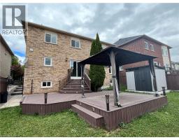 Welcome to this stunning two-storey detached home offering nearly 3,000 square feet of beautifully renovated living space in one of Burlington’s most sought-after family-friendly neighbourhoods. With hardwood flooring throughout and a thoughtfully designed layout, this residence combines elegance, comfort, and functionality—ideal for families looking to grow and thrive. The impressive curb appeal sets the tone, featuring a stamped concrete driveway, double garage, and a welcoming front porch. Inside, an open two-storey living room floods the main floor with natural light, creating a warm and inviting atmosphere. The formal dining room with French doors offers the perfect setting for family meals and celebrations, while the modern upgraded kitchen will delight any home chef with granite countertops, custom cabinetry, stainless steel appliances, a breakfast bar, and a walkout to the backyard. A cozy family room with a stone surround fireplace provides the perfect spot for relaxed evenings. Upstairs, the expansive primary suite features a walk-in closet with organizers and a spa-like 5-piece ensuite with a freestanding tub, double vanity, and oversized frameless glass shower. Three additional generously sized bedrooms and a beautifully updated main bath with double sinks and a walk-in shower ensure ample space for the whole family. The private, fully fenced backyard offers the perfect retreat—featuring an expansive wood deck, charming gazebo, and plenty of green space for children to play and families to entertain. Conveniently located near top-rated schools, shopping centres, parks, and major highways, this home provides the ultimate blend of lifestyle and location. (id:50886)
