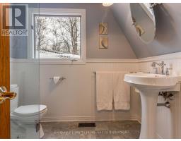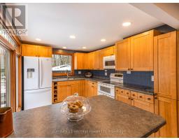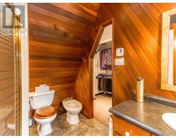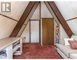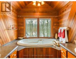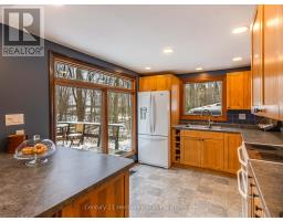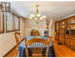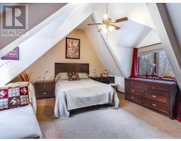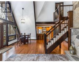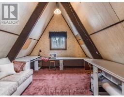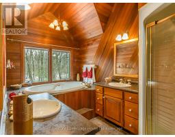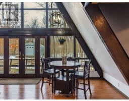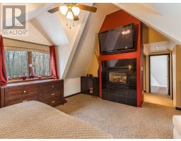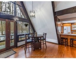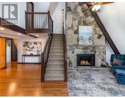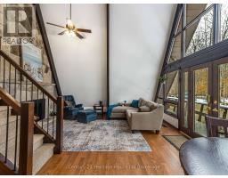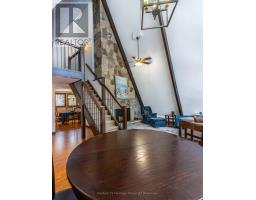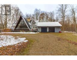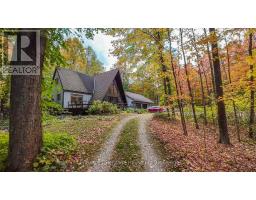 Country roads leading you home. Nestled and tucked away on a wooded 2.7 acres just south of Woodstock in Oxford Centre, this property offers the perfect blend of serenity and style. Along the tree lined winding landway, you'll find two small fish ponds and a spacious campfire area-an idyllic setting for peaceful mornings or evenings spent under the stars.The property features a unique and beautiful detached A-frame home, showcasing a soaring two-story stone fireplace, wraparound decks, and open-concept main floor living. The bright kitchen with the floor to ceiling windows flows nicely into the living area, perfect for entertaining. A separate formal dining room with gleaming hardwood floors also found throughout the main level. The main floor is complemented with an additional office space with direct exterior access making this the perfect spot for those who work from home. An updated bathroom completes the main floor with private views of nature in every direction. Upstairs, the impressive primary retreat includes a second fireplace, a six-piece ensuite, and a walk-in closet along with an additional bedroom . Both rooms feature unique custom architectural roof lines The lower level offers a spacious family room complete with a wet bar, wood burning fireplace, a 3rd bedroom, and a den-ideal for in-law potential-with a walk-up basement leading to the oversized double-car attached garage. Outside, you'll find a large 25' x 40' Quonset building with an RV hookup, a wraparound laneway with ample parking, tons of storage, and unmatched privacy. Don't miss your chance to experience this one-of-a-kind country retreat (id:50886)