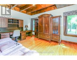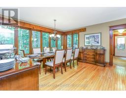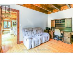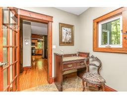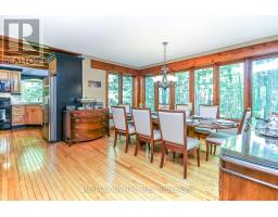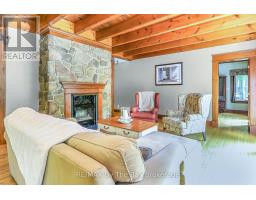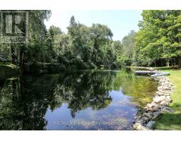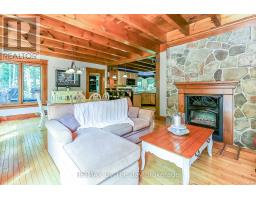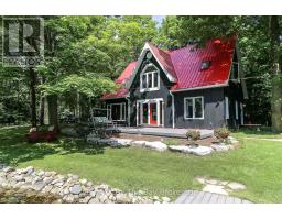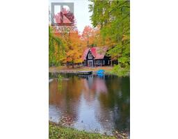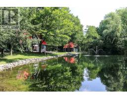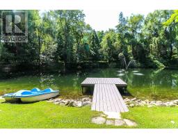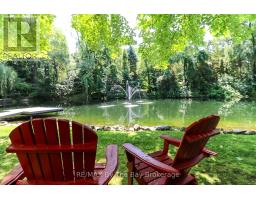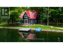 Is this your dream home! As you drive up, you'll see a picture-perfect house with a sparkling pond in front; it feels like something out of a storybook. This custom-built home sits on 3 private acres filled with tall trees, a peaceful stream, and plenty of space to relax. Even though it feels tucked away, you're only a short drive from all the amenities in Angus.The spring-fed pond (80' x 280') is a rare treasure, perfect for relaxing in summer and skating in the winter. The outdoor space is designed for entertaining, with a large maintenance-free composite deck, a dock, hot tub and an elegant stone walkway. This home has even hosted a wedding and events with over 100 guests! Inside, the open-concept design is bright and welcoming, with extra-large windows that bring in natural light. The kitchen features granite countertops, a stylish stone backsplash, and a breakfast bar that makes gatherings easy. The dining area is perfect for cozy meals or big celebrations. The living room offers a wood-burning fireplace for warmth and charm, plus a nearby den that can be used as a home office. Beautiful oak and pine floors add character, along with antique doors that make the home truly unique.The primary bedroom has a large picture window with stunning views of every season, autumn leaves, winter snow, or spring blooms. The second bedroom has its own balcony, a lovely spot to enjoy fresh air and the peaceful scenery. With 3 bedrooms and bathrooms on both floors, theres space and flexibility for your family and guests. (id:50886)
