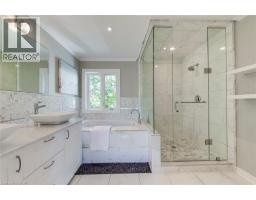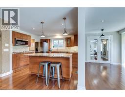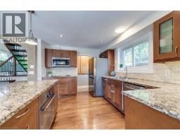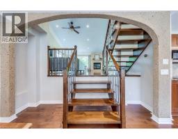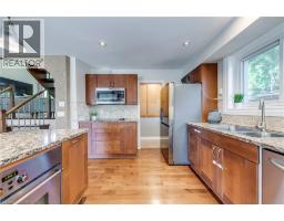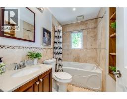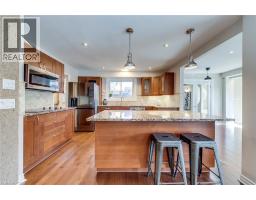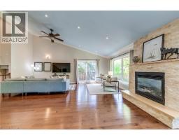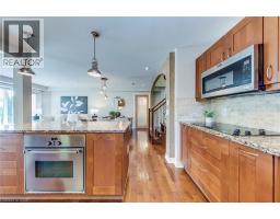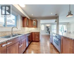 This spacious 3+1 bedroom, 4-bathroom custom-built home sits on a quiet street in Burlington’s sought-after Pinedale, just minutes from parks, schools, shopping, and major highways. Offering nearly 2,680 sqft above grade plus a fully finished basement, it’s ideal for growing families. The modern stucco exterior with large windows adds striking curb appeal. Inside, the main floor features an open-concept layout with a bright living room and a large eat-in kitchen showcasing hardwood cabinetry, a generous island, stone counters, and premium stainless steel appliances. The upgraded laundry/mud room provides access to both the garage and backyard. A raised second level impresses with soaring cathedral ceilings, massive windows, and a versatile family/dining space. An elegant open-riser staircase leads to the third floor with a luxurious primary suite offering wall-to-wall custom closets, oversized windows, and a spa-like ensuite with glass shower. Two additional bedrooms share a renovated 4-piece bath. The finished basement boasts above-grade windows, a spacious rec room with wet bar, a fourth bedroom, and full bath. Outdoors, the backyard offers space to relax or entertain amid mature trees and established landscaping. The location is unmatched—15 minutes on foot to Fortinos, Shoppers, and Appleby Plaza restaurants; five playgrounds within walking distance; and easy access to Centennial Bikeway, downtown Burlington, the lakefront, Burloak Waterfront Park, and GO transit. Just a short drive to RioCan Centre with shops, restaurants, cinema, and a soon-to-open Costco. Recent upgrades include front and back decks stained (2025), interlock patio (2025), fridge (2024), washer (2022), and microwave (2022). (id:50886)