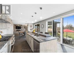 Manotick. The gourmet kitchen features custom cabinetry, leathered granite countertops, stainless steel appliances, a walk-in pantry, and a coffee bar, perfect for both everyday living and entertaining. A spacious formal dining room and dual patio doors fill the main living area with natural light, creating a bright and welcoming atmosphere. The luxurious primary suite offers a custom walk-in closet and a spa-inspired 7pc ensuite. One secondary bedroom includes a private ensuite, while a Jack-and-Jill bathroom connects two additional bedrooms. The fully finished lower level is ideal for entertaining, with dedicated spaces for a bar, theatre, exercise, a guest bedroom, full bath, and cold storage. Step outside to a beautifully landscaped backyard featuring a covered lanai with built-in speakers, a fire pit, and an interlock patio complete with granite counter top, gas BBQ, and built-in pizza oven. Additional highlights include a full irrigation system, Control4 smart home system, central vac, and surround sound in the theatre and family rooms. This home is the ultimate entertainers dream inside and out. Don't miss out on the opportunity to make it yours! (id:50886)