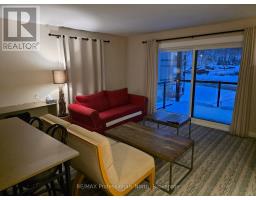 $946.26 MonthlyThis Summit Lodge unit is tenant-occupied and shows very well. It is not on the resort rental program but has a long-term tenant. No HST. This suite is on the second floor, which means fewer stairs to climb. This suite is furnished, as seen. The comfortable unit has a single King bed in the bedroom. There is a cozy gas fireplace in the living room. The view from the windows and balcony beautiful, especially in the Fall. Also, if you're looking to go for a swim in the nearby outdoor pool - you can scope out if it's busy or not right from the comfort of your suite. Being conveniently located close to the Main Building at Deerhurst Resort, you have convenient and easy access to the many activities, restaurants and other amenities. Owners receive discounts on food and beverage as well as some activities plus free use of cross country skis, snowshoes, canoes and kayaks plus the waterfront which has both deep water as well as a shallow beach. There are so many activities to do that no members of the family will be bored in either summer or winter: paintball, tree top trekking, cross country skiing, downhill skiing, snow shoeing, snowmobiling, hiking trails, beach, boating, fishing, indoor and outdoor swimming pools, tennis courts, golf, and much more! This is truly an amazing Resort. All utilities including WIFI and Cable TV are included in the condo fee. (id:50886)