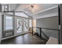 Experience Port Dover living in this updated bungalow overlooking the channel! With a grand total of over 3300 sq. ft, this home offers 4 bedrooms, 3 bathrooms, and 2 kitchens - this versatile layout is ideal for possible Air BNB, multi-generational living or accommodating guests. A double door entry leads to a large foyer with vaulted ceilings and hardwood flooring that extends throughout the main level. The striking newly designed eat-in kitchen showcases Cortez counters, under/upper mount lighting & contemporary style cabinetry. This space opens to the great room that features beamed vaulted ceilings, gas fireplace with stone back drop & Clerestory windows that flood the space with natural light- from here, a sliding door leads you to a 4-season sunroom complete with charcoal grilling station & garden door access to a deck area. The vaulted beams span across an open ceiling over an office area (that could act as an additional bedroom) and continue into the massive primary bedroom. This space features 3 double closets, vaulted ceilings, 5-piece ensuite & views of the canal. A conveniently located laundry area off the kitchen provides access to a side deck & driveway & a 3-piece bath completes the main level. The lower level is updated & perfectly set up as an in-law suite. It offers a full kitchen, dining area, living room with fireplace, three bedrooms, a 3-piece bath & laundry area. It also features a bright sunroom with a view of the channel & side door entry to the lower deck. An optional secondary access off this sitting room leads to another sunroom that connects to the main living area. The multi-purpose layout and entry points of this move-in ready home provides endless possibilities for the new owner! Experience popular Lake Erie's many amenities & attractions including Live Theatre, Music in the Park, Links Golf Course, Fine Dining, Eclectic Shops, Bistros/Eateries & Famous Beach Front. (id:50886)