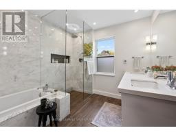 **Say hello to this wonderful home, ideally situated in the ever-popular Golden Triangle of East York!** This charming 3-bedroom property blends classic character with thoughtful modern updates. Original gumwood trim,leaded glass, and hardwood floors pair beautifully with a renovated kitchen featuring stainless steel appliances, a breakfast bar and ample storage -perfect for casual meals or entertaining.Upstairs, the spacious, spa-inspired bathroom includes a separate tub and shower plus radiant in-floor heating for year-round comfort. The king-sized primary bedroom offers a wall-to-wall closet. Most of the windows on the first and second floors have been updated to casement style, and the bedrooms have California shutters.The basement has been lowered, providing great ceiling height and a separate entrance-ideal for an in-law or nanny suite, or as additional family living space. Both front and back gardens have been professionally landscaped. The private backyard retreat features a deck and multiple patios, creating an inviting oasis in the city.Additional highlights include legal front pad parking and an insulated garage with a 30-amp breaker panel-offering excellent potential for a home office, gym, or personal creative space.This prime location offers a true sense of community and convenience-steps to schools, parks, a community centre with pool, gym and a library, and the Don Valley ravine trails for walking and biking. Enjoy easy access to downtown, major highways, grocery stores, and a wide range of shops and restaurants along the Danforth. The upcoming Cosburn subway station will be just a short walk away!A pre-list home inspection is available. (id:50886)