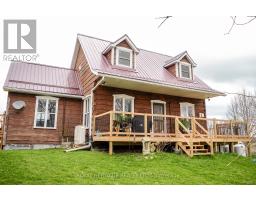 Beautiful Equestrian Hobby Farm with a Tree-Lined Driveway Leading to 103 Acres, Surrounded by Serene Fields. Instead of boarding your horses, here's an opportunity to own an equestrian farm! Boasting a brand-new 3-stall (12x12 stalls) stable with concrete floors and the opportunity to build 8 more. A 60 ft x 100 ft. 2022 riding arena with potential viewing room. The property has paddocks; electric fencing, and 3 shelters. The log home features many upgrades and renovations over the last few years, including main-level open-concept eat-in kitchen with granite countertops and an island, a pantry, and a walk-out to the deck. The dining room has a cozy propane fireplace and a large window overlooking the countryside. The primary bedroom has a 3-piece ensuite and 2 additional bedrooms. The lower level has a separate entrance with a cozy family room retreat and the potential for a bedroom. Great setup for a hired hand or an in-law suite. Brand new walk-out to a wraparound porch with 2 entrances. Convenient side entry through a spacious room and basement laundry room. Enjoy your morning coffee and the beautiful views from the peaceful deck overlooking gardens and fields. (id:50886)