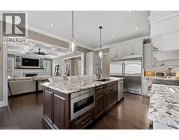 Luxury Living w/ Accessory Apartment in Carriage Crossing! This spectacular, custom Klondike-built executive home is nestled on a premium corner lot in Waterloo’s prestigious Carriage Crossing. Loaded w/ luxurious upgrades, & offering 5,100+ SF of beautifully finished living space, this 5 bed, 5 bath home includes a full accessory apartment/in-law suite w/ private walk-up—ideal for extended family, guests, or added income. Step inside to a grand foyer that opens to a front office/living rm & a formal dining rm w/ tray ceiling, seamlessly connected to the servery & butler’s pantry. At the heart of the home is the designer kitchen, featuring granite counters, premium appls, under-cab lighting, lrg centre island, & a bright breakfast area w/ walkout to the bkyard. The adjoining great rm features coffered ceilings, a gas FP, & custom built-ins. A powder rm & mudrm w/ built-ins complete the main flr. Upstairs, the primary suite offers tray ceiling detail, walk-in closet, & a spa-like 5-pc ensuite w/ soaker tub, tiled glass shower, dual vanity. 3 additional bedrms all have walk-in closets & bathrm access—one w/ a 3-pc ensuite, & 2 sharing a 4-pc Jack & Jill bath. Convenient 2nd-flr laundry. The finished walk-up basement functions as a full accessory apt w/ oversized windows, modern kitchen, spacious family rm w/ electric FP, 5-pc bath, lrg bedrm w/ walk-in closet, & ample storage. Throughout: 10' main flr ceilings, hrdwd flrs, porcelain tile, crown moulding, ceiling treatments, California shutters, potlights, upgraded lighting, & granite/quartz counters. Exterior features interlock driveway (parking for 7), manicured landscaping, covered patio, private/partially fenced yard w/ shed. Prime location: top rated schools, RIM Park, Grey Silo Golf Club, Farmer’s Market, trails, parks, & major employers. Quick HWY access, universities, & amenities. A rare opportunity to own a move-in ready luxury home w/ unmatched versatility in one of Waterloo’s most desirable neighbourhoods! (id:50886)