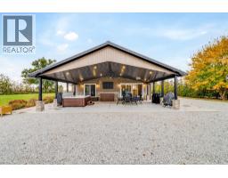 Discover your own private country oasis in this exquisite 4-bedroom, 4-bath rancher offering over 2,500 sq ft of luxurious living space designed for comfort, style, and functionality. This stunning home features an open-concept layout ideal for entertaining, highlighted by a modern chef’s kitchen renovated in 2020, spacious living areas with serene sunset views, and a warm, elegant atmosphere throughout. The primary suite offers a spa-inspired ensuite and walk-in closet, while a second bedroom with its own ensuite provides the perfect retreat for guests. The lower level is an entertainer’s dream, featuring a private sauna, expansive games room, and custom bar, flowing seamlessly to a covered outdoor patio complete with a hot tub, granite bar, and full BBQ station for year-round enjoyment. The property includes a heated 2,064 sq ft garage with 200 amp service, in-floor heating, and a 2021 roof, as well as a 4,000 sq ft barn/workshop with updated 200 amp electrical (2021) and wood stove heating, plus a gym and abundant storage. Additional updates include a pavilion (2021), HWT (2024), AC (2019), roof (2018), septic system (2010), and sump pump with backup (2022). Perfect for those seeking a self-sufficient lifestyle, this property offers ample space for gardening, outdoor recreation, and even raising chickens. Included are all major appliances—two fridges, stove, dishwasher, microwave, washer, and dryer—along with a hot tub, pool table, bar and furniture, window coverings, and a shipping container. Conveniently located close to amenities yet offering the peace and privacy of rural living, this home perfectly blends luxury, practicality, and serenity. Whether you’re an entertainer, hobbyist, or simply looking for a private retreat surrounded by nature, this property delivers the ultimate country lifestyle experience. (id:50886)