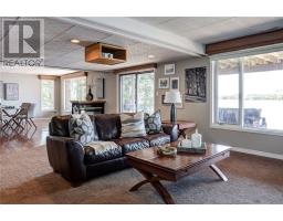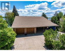 Welcome to your next chapter of lakeside living on the iconic shores of Ramsey Lake. This executive bungalow offers 66 feet of pristine, south-facing waterfront—a rare blend of elegance, comfort, and convenience just minutes from Bell Park, Health Sciences North, shopping, dining, and entertainment. Whether you crave peaceful mornings by the water or vibrant city energy, this home delivers the best of both worlds. Step inside to an open-concept main floor designed to impress, where the kitchen, dining, and living areas are all framed by panoramic lake views. The chef’s kitchen is a showstopper, featuring rich cherrywood cabinetry, gleaming granite countertops, and a spacious centre island—ideal for family meals or entertaining guests. A double-sided gas fireplace adds warmth and sophistication, seamlessly connecting the living and dining areas, while sliding patio doors lead to an expansive deck for effortless indoor-outdoor living. This home offers 3 generously sized bedrooms—2 on the main level and 1 in the fully finished lower level. The primary suite is a private retreat with a large walk-in closet and a spa-like ensuite complete with heated travertine floors. Downstairs, you'll find a bright and open layout perfect for entertaining, featuring a family room, wet bar, games area, and a second bathroom with its own relaxing sauna. Stay cozy in every season with in-floor heating and unwind beside another elegant double-sided gas fireplace. Outside, your private oasis awaits. An interlocked lakeside patio with natural gas BBQ hook-ups sets the stage for unforgettable summer evenings, while the shoreline offers direct access to swimming, boating, and sunbathing. In the winter, enjoy skating and ice fishing—this is truly a four-season lifestyle.Additional features include a double attached garage, carport, and an interlocked driveway with plenty of parking. This exceptional home on Ramsey Lake is a rare opportunity—don’t miss your chance to live the waterfront dream. (id:50886)