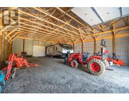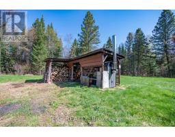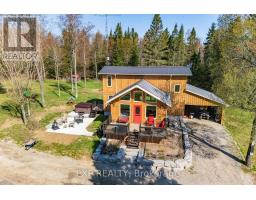 Your oasis of dreams awaits your arrival. A hot tub for those star gazing nights, a huge shop for those many projects to complete or invent. A network of trails to hike, atv, snowmobile or even horseback ride. The trees not only allow for the recreational aspects but many maples invite syrup harvesting in the spring. A babbling brook flows through the property and is populated with brook trout for those awesome morning breakfasts. You can hike or atv back to the clearing on the hill where at night you can see the moon or gaze at the heavens above. The 197 acre land houses many wildlife species including white tail deer, moose, ruffed grouse, wild turkey, rabbits, and those other animals who make the forest their home. Firewood abounds throughout and there is opportunity for marketable timber. A main floor of extravaganza to dine or entertain distinguished guests and a downstairs of leisure and fun. A wine cellar is tucked away under the stairs for those special nights or occasions. Privacy like no other and still within minutes to the amenities the village of Bancroft beholds. Three garage spaces to house your toys or keep your special auto in the new 60x40 garage including 16ft ceilings, from the elements. The garage located left to the house encompasses a bunkie to keep your special guests comfy and warm. Also equipped with propane Generac generator, air conditioning by two heat pumps, and outdoor wood fired boiler to keep you acclimatized no matter the outside weather. This property has the ultimate of enjoyment for the activities that few get to realize. (id:50886)