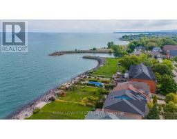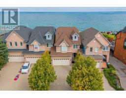 Experience unparalleled lakefront living with this exceptional property, offering breathtaking vistas from nearly every room. Perfectly positioned within the prestigious Newport Yacht Club community, this home provides the rare convenience of mooring a boat just steps from your front door, along with effortless QEW access for commuting. This "linked" townhome lives like a detached home, sharing no common walls and boasting parking for six vehicles, including a full double garage. The open-concept main level is a showcase of style and comfort, featuring an updated kitchen with new quartz counters, crown molding, gleaming hardwood floors, a gas fireplace, and a separate dining room. Step through sliding doors to an oversized patio that stretches across a meticulously landscaped 100-foot yard, leading to a private waterfront patio where you can watch the sun rise or set over Lake Ontario. Upstairs, you'll find three generous bedrooms plus a home office, bedroom-level laundry, 2nd gas fireplace in primary suite and two fully updated bathrooms. The primary suite opens onto a balcony where the panoramic lake and Toronto skyline views are simply unforgettable. Notable updates include new counters, sinks, faucets, roof, furnace, AC, light fixtures, and window treatments. A finished lower level with a walk-up to the yard adds even more living space. Rarely available, this is a truly special opportunity to secure a piece of Lake Ontario's waterfront-an address where every day feels like a getaway. (id:50886)