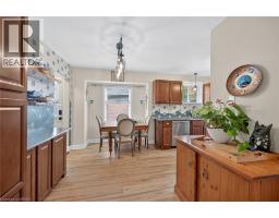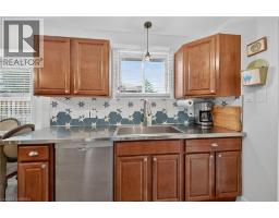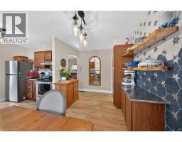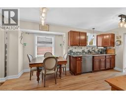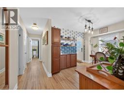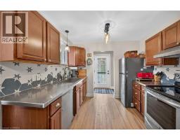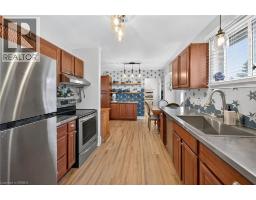 Spectacular Brick Bungalow with Garage in Desirable North End Location! Larger than it looks, this beautifully updated all-brick bungalow offers 3+ bedrooms & 2 modern bathrooms, set on a well-landscaped, fully fenced lot in the sought-after Lynden Park area. Step inside to discover a fabulous eat-in kitchen featuring rich, warm-toned cabinetry, stainless steel appliances, & hygienic easy-to-clean stainless steel countertops complemented by a ceramic tile backsplash. A striking accent wall showcases a pantry & workstation with live-edge shelving & additional lower cabinetry. A side door off the eating area allows for easy access to the rear yard & patio for summer entertaining & BBQ's. The spacious living room features a large picture window, newer luxury vinyl plank flooring that flows throughout the main floor. The updated main bath offers a modern vessel sink & fixtures. 3 well appointed bedrooms complete this level-one with direct access to the rear patio. Downstairs, you’ll find a beautifully finished lower level with a spacious family room featuring a gas fireplace, surround sound system, built-in shelving & desk area, & gorgeous honed & polished travertine tile flooring. The lower level also includes a modern 3-piece bath with a walk-in shower, & a bonus room currently used as a 4th bedroom with ample storage & closet space. This home is truly move-in ready and ideally located just minutes from Hwy 403 -perfect for commuters. Enjoy being within walking distance to both public & separate schools, & only minutes from Lynden Park Mall, grocery stores, most amenities, & the new Costco. The extra-long paved driveway provides ample parking & features rolling gates for easy access to the newer single-car garage. In the private backyard, relax or entertain on the durable epoxy-coated patio under the huge shaded pergola-perfect for family gatherings or weekend staycations. Most newer windows/exterior doors. Move right in & start living your North End dream today! (id:50886)