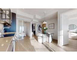 This stunning 2-bedroom plus media room, 2-bathroom condo boasts highly sought-after southwest exposure, filling every corner with natural light, while 9-foot ceilings and a sleek open-concept layout create an atmosphere of sophistication and comfort. Offering a total of 825 sq. ft. of exceptional living space - 712 sq. ft. indoors plus a spacious 113 sq. ft. balcony - it perfectly blends comfort, style, and functionality. Expansive floor-to-ceiling windows frame unobstructed, panoramic vistas of the Toronto skyline, sparkling Lake Ontario, and Mississauga's vibrant city center. The modern kitchen features integrated stainless steel appliances, quartz countertops, backsplash and elegant cabinetry that flows seamlessly into the living area, and an oversized private balcony - the ultimate spot for soaking in those million-dollar views. Primary bedroom features wall-to-wall windows and balcony access, with the primary suite boasting a spacious shower. With a four-piece guest bath and a generous foyer closet, this home is as practical as it is beautiful. Enjoy resort-style amenities: an outdoor saltwater pool, poolside lounge, yoga studio, fitness centre, steam rooms, media lounge, chefs kitchen & dining area, outdoor lounge, BBQ stations, fire features, splash pad, children play zone, outdoor skating rink, guest suites, and more. Additional upgrades include floor tiles in all bath rooms, windows coverings throughout, kitchen backsplash, TV wall receptacle and conduit, ceiling and wall outlet in all bedrooms. One parking (P1 / #60) and one locker (Level 2 / #45) are included. (id:50886)